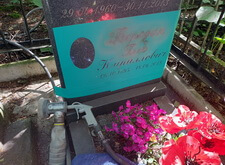В заключении мы приклеили фотокерамику и покрыли обе надписи на памятнике специальным проявляющим раствором. Вот так выглядело место захоронения на момент окончания работ.